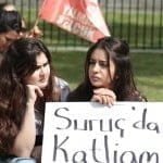 Suruç katliamı ve ardından gelişen infaz ve tutuklama furyası başta olmak üzere Türk savaş uçaklarının bugün Kandil’de bulunan Zergele köyüne yönelik hava saldırısı sonucu 10 sivilin yaşamını yitirmesi de protesto edildi.