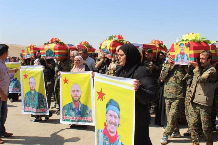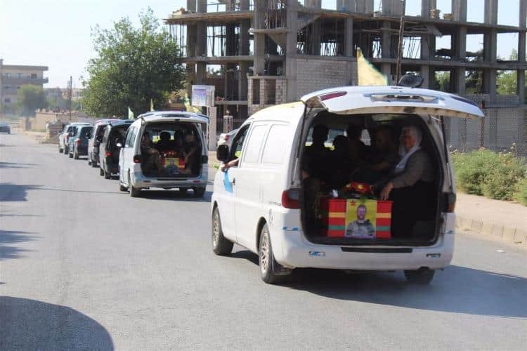 Halk savaşçıların naaşlarını aldıktan sonra uzun bir araç konvoyu eşliğinde Sêmalka Sınır Kapısı’na doğru yol aldı.