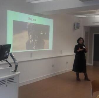 Bristol Üniversitesinde master eğitimine devam eden Özlem Koçyiğit, üniversitede yapılan konferansta ‘sürdürülebilir kalkınma ve eğitimin rolü’ üzerine yaptığı sunumda Rojava’daki eğitim sistemini anlattı.