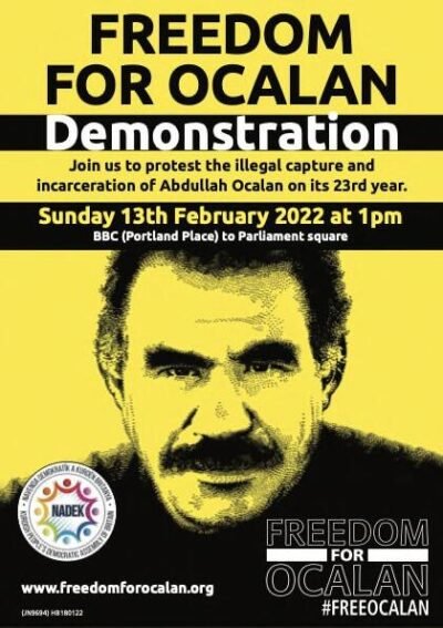 Britanya Kürt Halk Meclisi, 15 Şubat komplosunun yıldönümü dolayısıyla 13 Şubat günü BBC binası önünde yapılacak olan eyleme, tüm devrimci, demokrat, yurtsever, sol ve sosyalist kesimleri güçlü katılmaya davet etti.