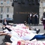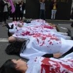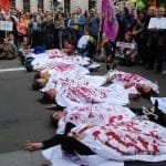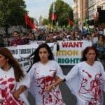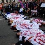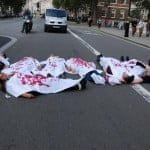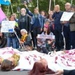 Demokratik Güç Birliği’nin çağrısıyla bir araya gelen eylemciler, Kürtleri ve Halkların Demokratik Partisi’ni hedef alan politikaların son bulması gerektiğini dile getirip, Parlamento Meydanında devam eden kanlı- kefenli protesto gösterisi ile yolu trafiğe kapattı. Turistlerin de yoğun olduğu yerlerde yapılan eylem oldukça dikkat çekti.