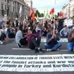 Açıklama şöyle devam etti: “Erdoğan’ın “teröre karşı savaş” adı altında başlatmış olduğu hesapları nedeniyle, Kürtleri ve HDP’yi hedef alan faşist saldırılar Türkiye’nin birçok kentinde baş gösterdi. HDP parti üyeleri ve belediye başkanları gözaltına alındı, büroları yakıldı. PKK mevzileri ve Kürt köyleri bombalandı. Cizre, Silopi ve Silvan bölgelerinde sokağa çıkma yasağı ve sıkı yönetim ilan edildi. Keskin nişancılar sokaklarda sivilleri katletti. Kürtlere ait iş yerleri yakılıp yağmalandı, siviller öldürüldü ve linç girişimlerine maruz kaldı. Haziran seçimlerinden bu yana 100 sivil öldü ve yaklaşık 2544 kişi gözaltına alındı. Türk Devleti’nin terörü en doruk noktasına ulaştı. Türk Devleti, Daiş terörüne karşı savaştığına dair ısrar ediyor, Nato ve Britanya Hükümeti ise Kürdistan’da yaşanan soykırıma karşı sessiz. Artık Türk Devleti’nin iki yüzlülüğünü görme zamanı.”