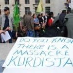 Eylemciler “Türkiye’deki katliamları durdurun!, Britanya Kürtlerin öldürülmesine sessiz kalma!, Kürdistan’da katliam var biliyor muydunuz? Katil Türk Devleti!” yazılı pankartlar taşıdı.