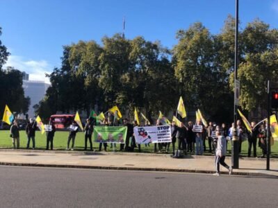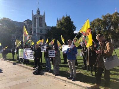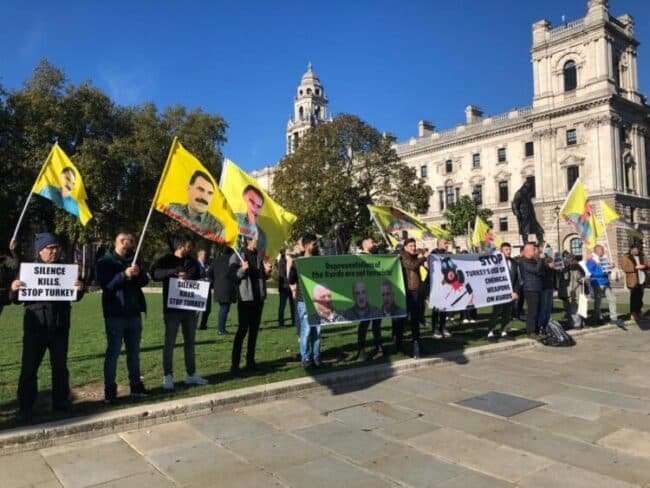 Kürt Halk Meclisi ve Kürt Kadın İnisiyatifi üyesi bir grup Britanya Parlamentosu önünde bir araya gelerek protesto eylemi gerçekleştirdi. Kürt Halk Önderi Abdullah Öcalan posterleri ile Türk devletinin gerilla alanlarına dönük kimyasal saldırılarını protesto eden pankart ve dövizler taşıyan grup, İngiltere’nin Türk devletinr silah satışından vazgeçmesi istendi.