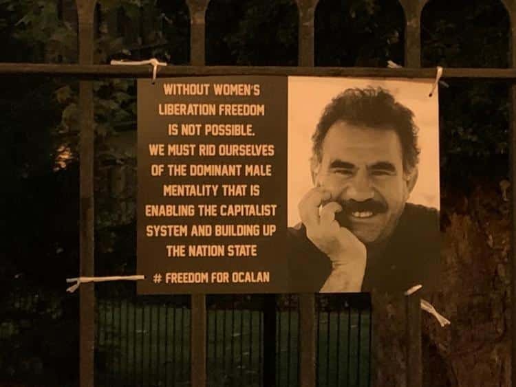 Londra Kürt Halk Meclisi Örgütleme Komisyonu tarafından Kürt Halk Önderi Abdullah Öcalan üzerindeki tecriti kırmak ve özgürlüğüne dikkat çekmek amacıyla başlatılan pankart eylemleri kapsamında Kuzey Londra’nın bir çok bölgesine Öcalan’ın poster ve afişleri asıldı.
