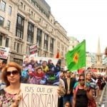 Londra merkezde bulunan BBC televizyonu önünde başlayan ve Amerika büyükelçiliğine yürüyen yüzlerce Kürdistanlı ve dostları İşid terörünü protesto etti. Kürdistanlı kurumlar ve Demokratik Güçbirliği bileşenlerinin katıldığı eyleme farklı toplumlardan çok sayıda kişi, akademisyen ve din temsilcisi katıldı.