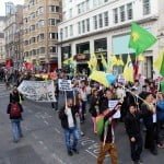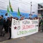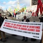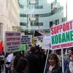 Başkent Londra’da Kobane ile dayanışma eylemleri devam ediyor. Pazar günü Londra merkezde bulunan BBC binası önünde bir araya gelen yüzlerce kişi yapılan mitingden sonra Trafalgar meydanına kadar yürüdü. Eyleme İşçi partili milletvekili David Lammy ve Jeremy Corbyn’in yanı sıra çok sayıda İngiliz insan hakları savunucusu, ve devrimci sosyalist gruplar destek verdi.
