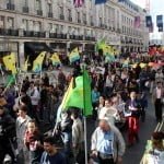 Yapılan konuşmaların ardından uzun bir kortej oluşturan kitle yürüyüşe geçti. Yürüyüş boyunca İşid karşıtı İngilizce sloganların atıldığı eyleme sosyalist ve anti faşist gruplar da bayraklarıyla katılarak destek verdi.