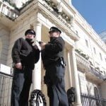 Özgecan Aslan’ın öldürülmesini Londra TC Büyükelçiliğinin önünde protesto eden kadın kurumları elçiliğin önüne siyah çelenk bırakıp basın açıklamasını teslim etmek istediler. Polis çelenkin kapının önüne bırakılmasına izin vermediler ve kaldırıma bırakılmasını istediler.